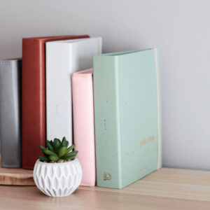 Posiada ringi na cztery oczka, co pozwala dobrze utrzymać wkład w plannerze. Planner posiada gumkę do zamknięcia.