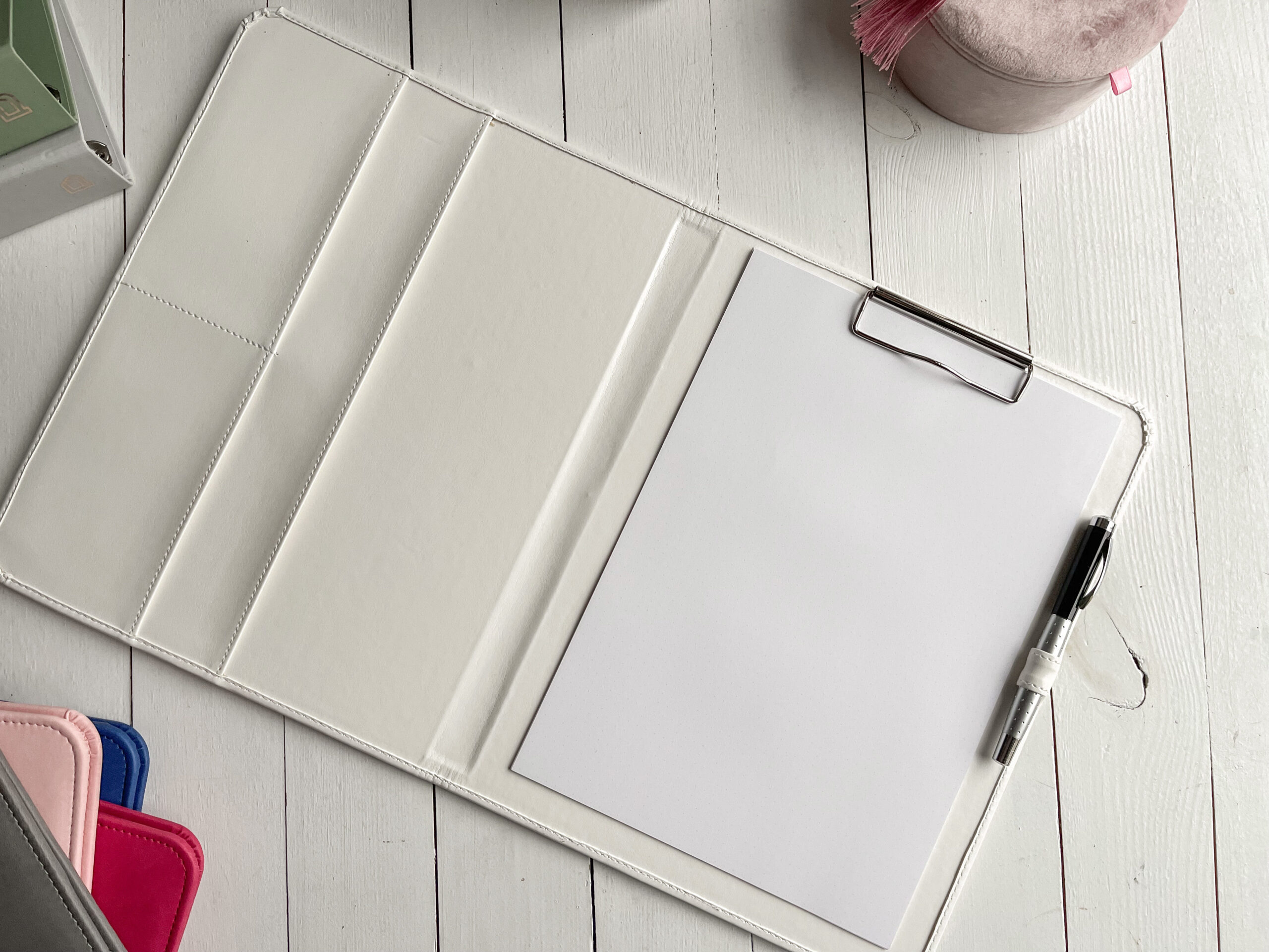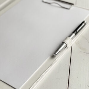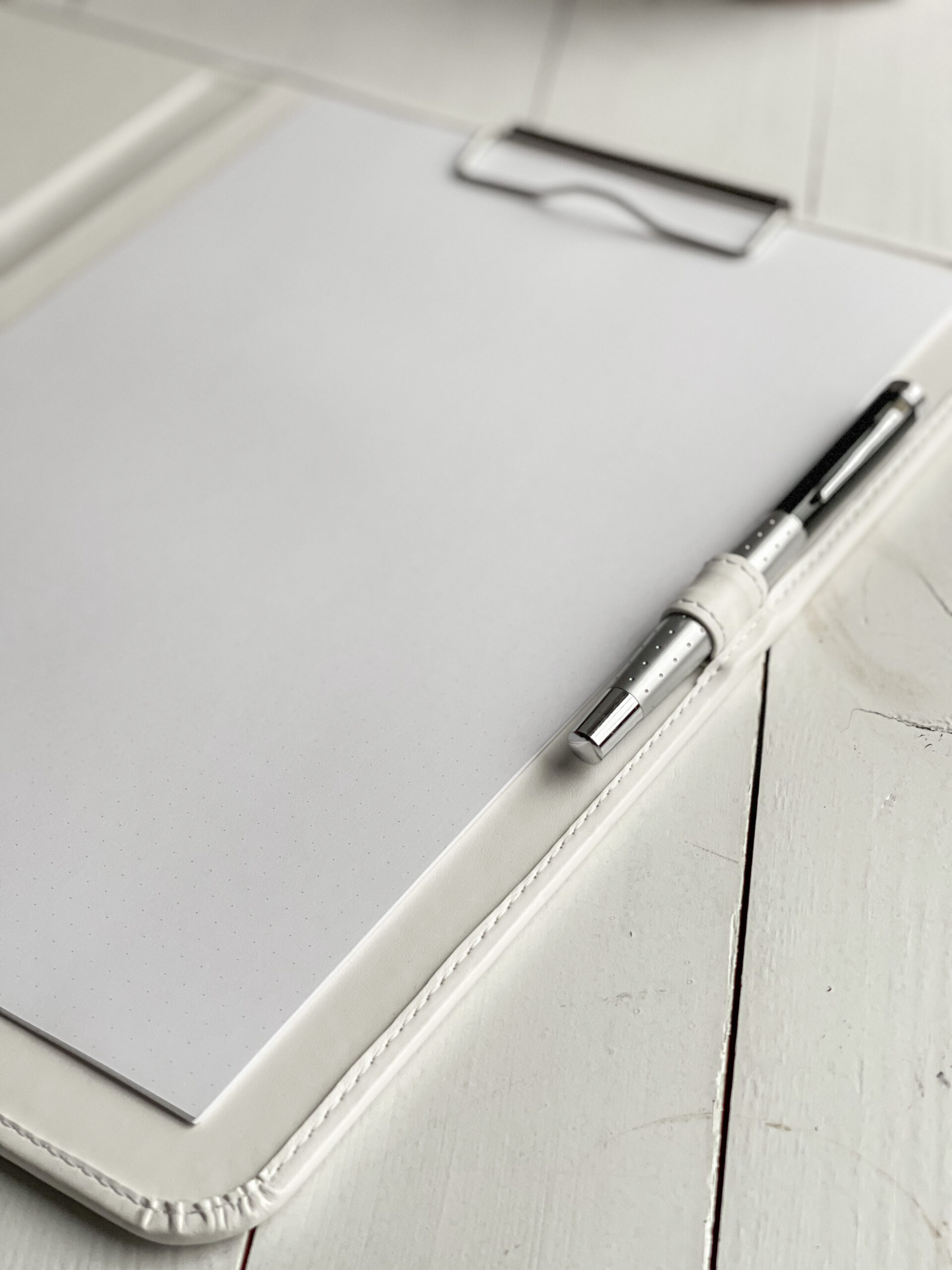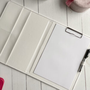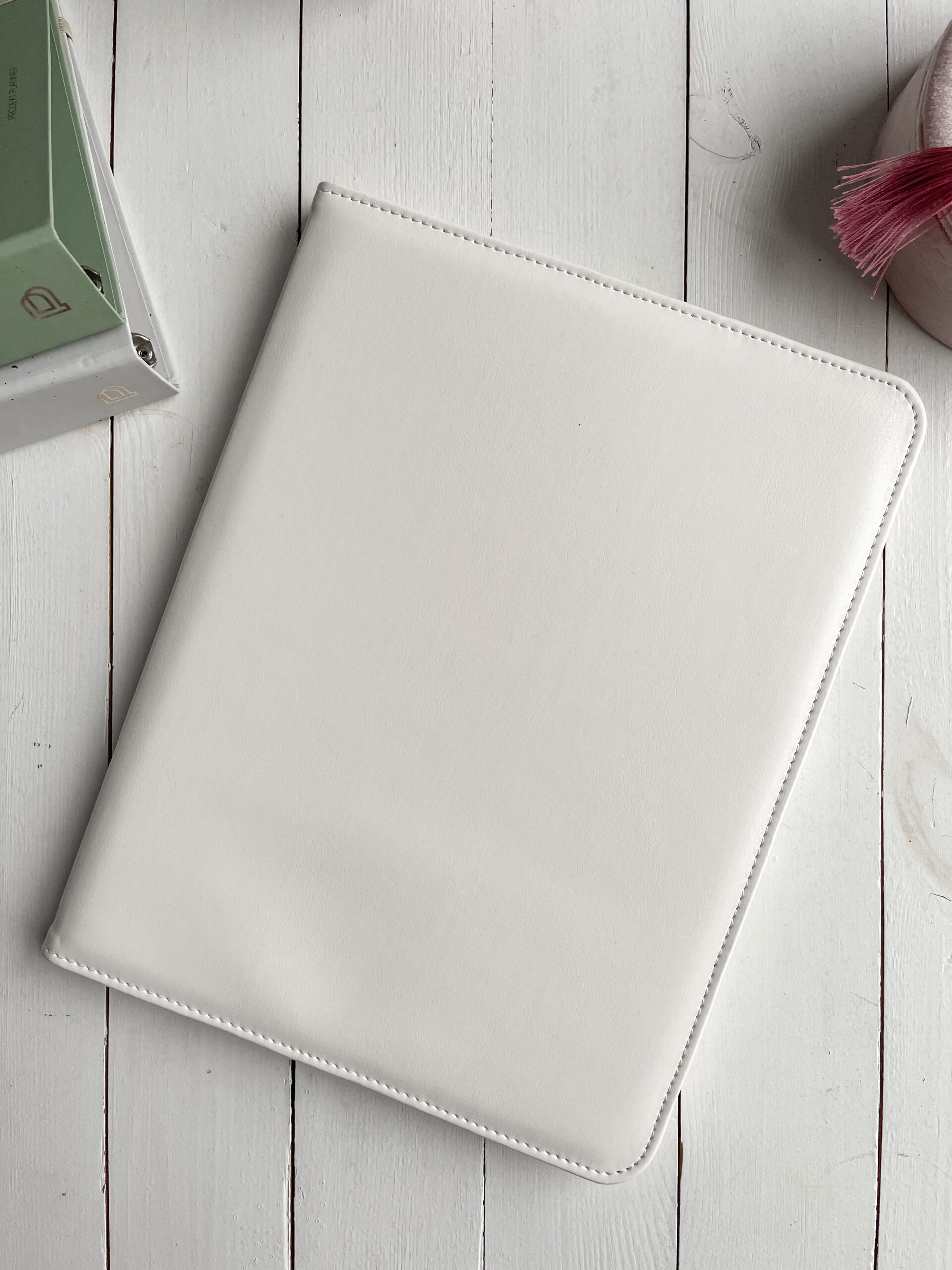 Szyta ręcznie teczka na dokumenty A4 w kolorze białym